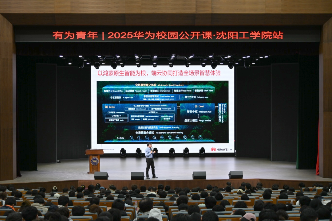 4月8日,华为校园公开课(HCOC)在校图书馆礼堂举办。此次活动以“鸿蒙启航 开启全场景智慧生态新纪元”为主题,吸引了近800名师生聆听。华为全球培训中心高级讲师汪海锋、辽宁终端业务部营销总监张楠作为主讲嘉宾,进行前沿技术分享与职场经验交流,助力沈工学子探索数字化浪潮下的专业成长方向与职业发展新机遇。
